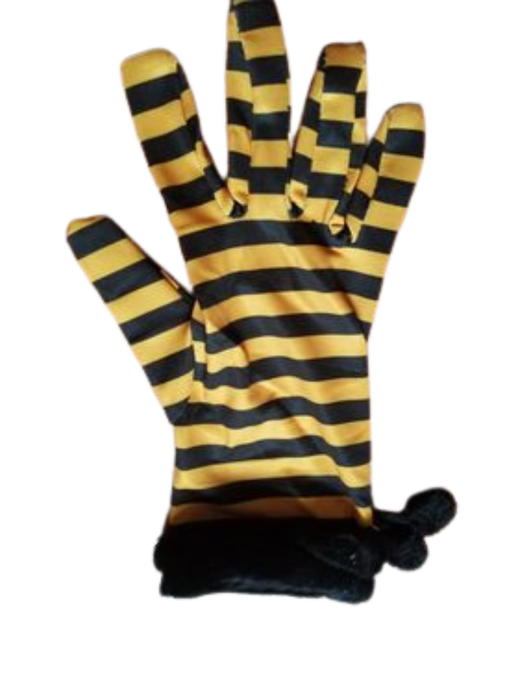 1 pár sárga-fekete csíkos felnőtt méretű jelmezkesztyű - ÚJ