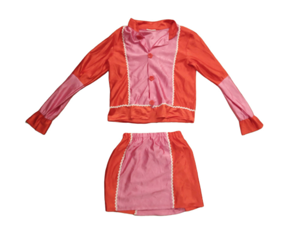128-134-es piros-rózsaszín kétrészes jelmezruha