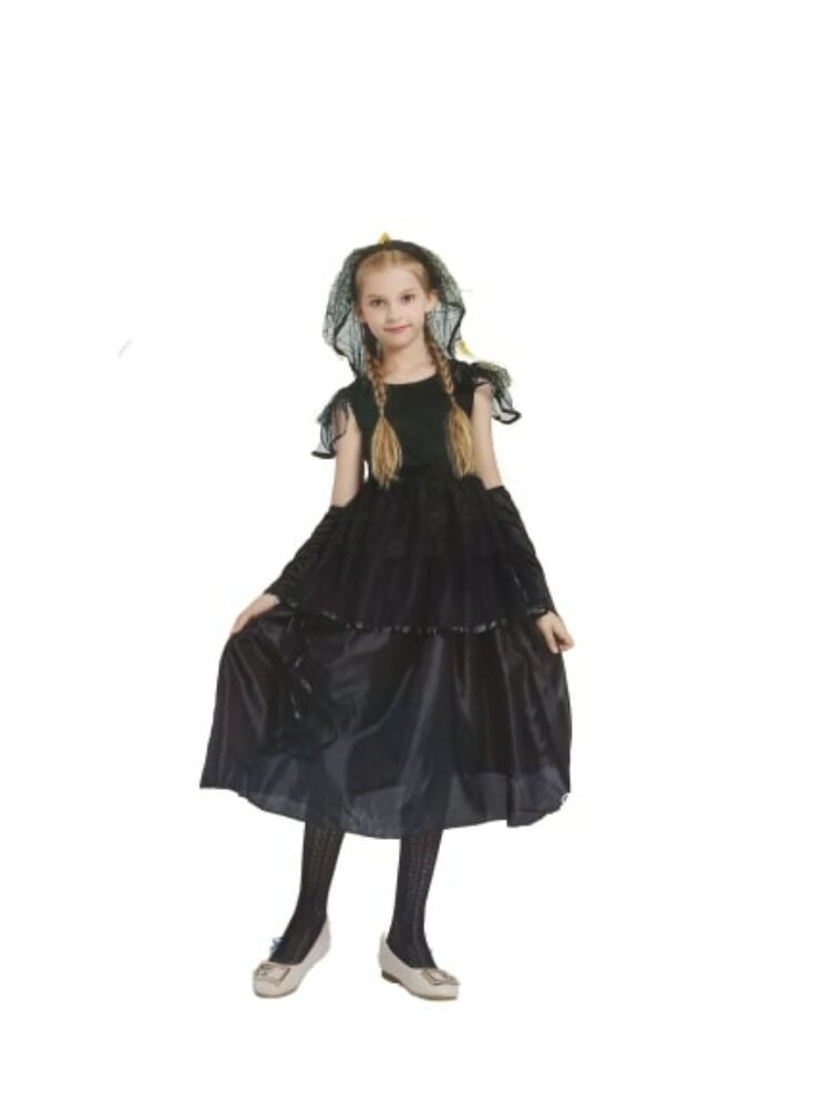 4-6 évesre fekete jelmezruha, fátyollal - ÚJ