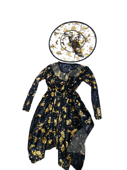 5-6 évesre fekete csillagos boszorkányruha kalappal - Halloween - ÚJ