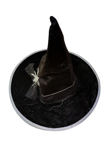 52-54 cm-es fejre fekete ezüst pókos boszorkánykalap - Halloween - ÚJ
