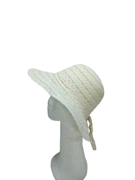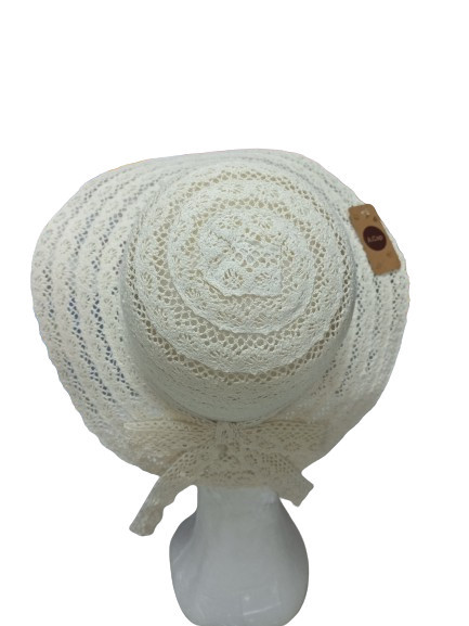 56-58 cm-es fejre törtfehér női csipkés szalmakalap - ÚJ