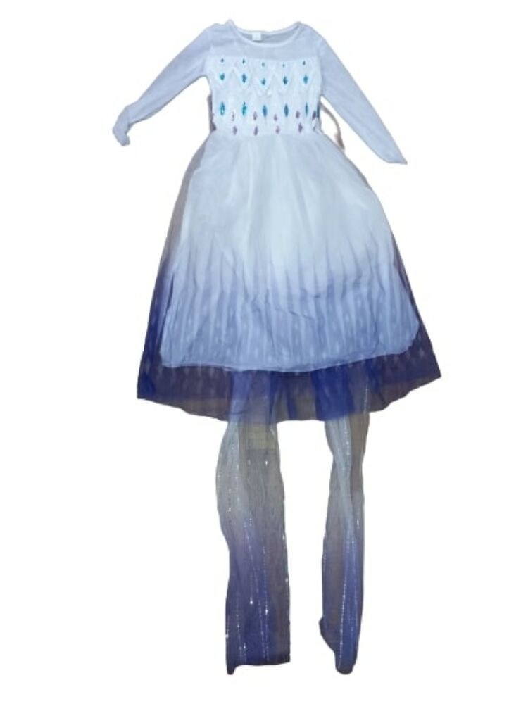 6-7 évesre kék-fehér flitteres, uszályos jelmezruha - Frozen - Jégvarázs - ÚJ