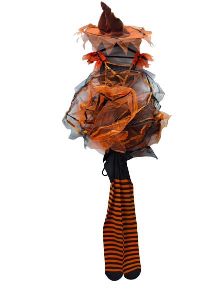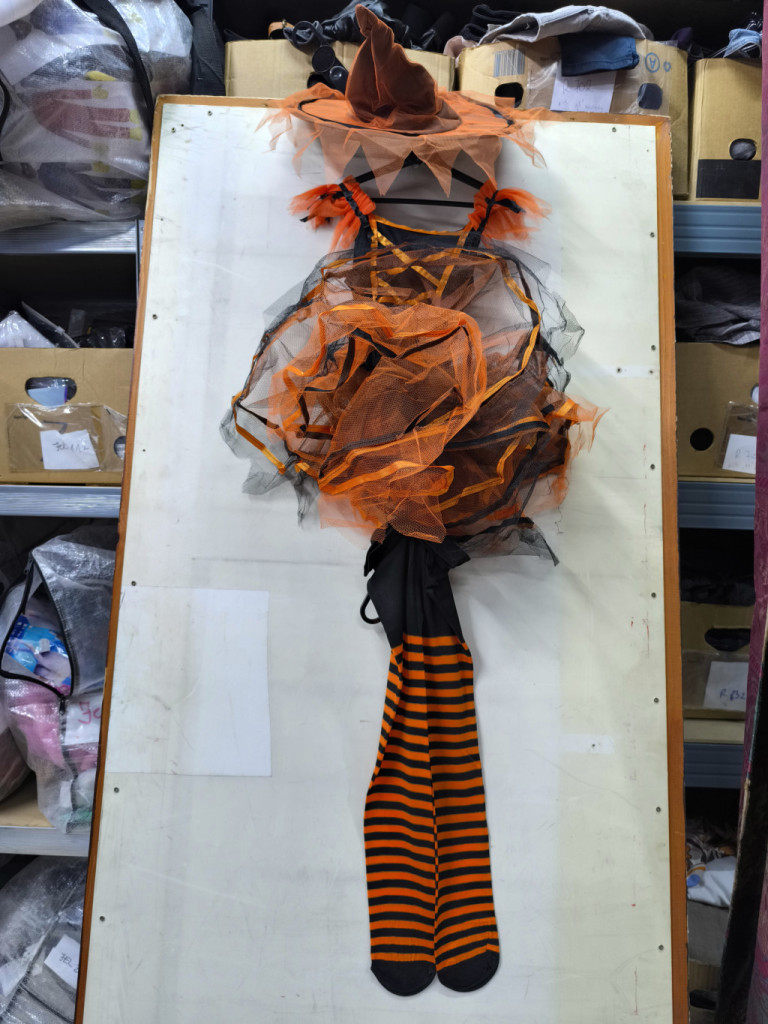7-8 évesre narancssárga-fekete boszorkányruha kalappal, harisnyával - Halloween - ÚJ