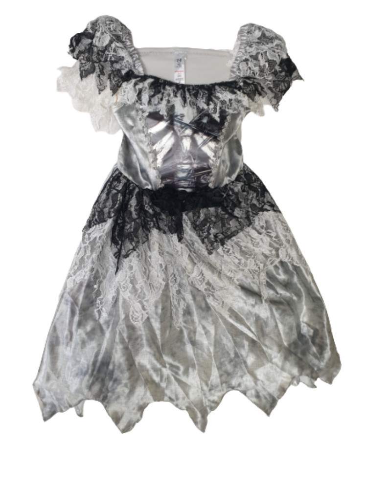 7-8 évesre szürke-fekete csipkés csontvázas halloween jelmez - ÚJ