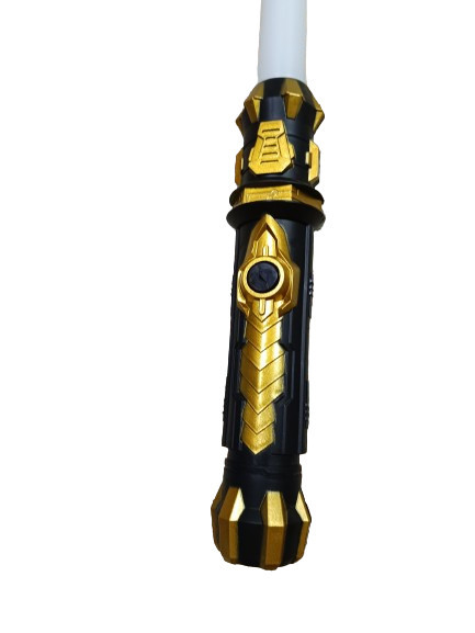 75 cm hosszú hangot és fényt adó fénykard, lézerkard, arany markolatú - jelmezkiegészítő - ÚJ