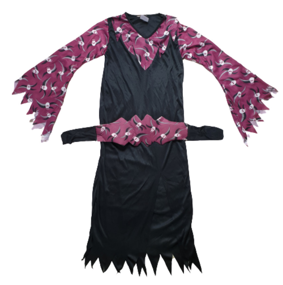 8-11 évesre fekete-lila koponyás lány halloween jelmezruha övvel