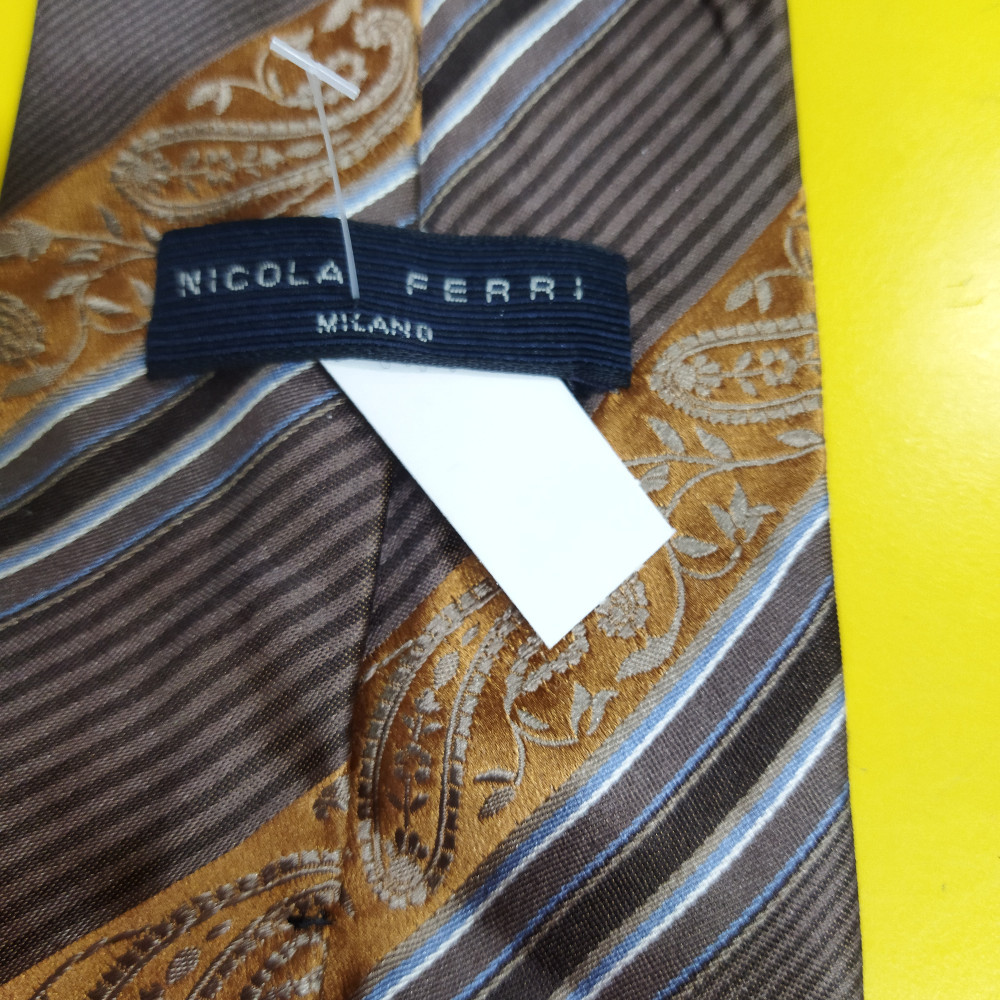 Barna csíkos férfi selyem nyakkendő - Nicola Ferri