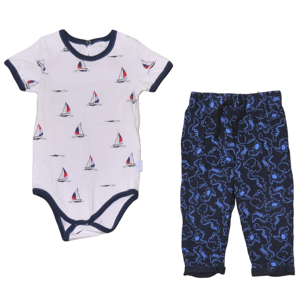 Brendon/In extenso - Fehér, kék, dínós ruha szett (80)