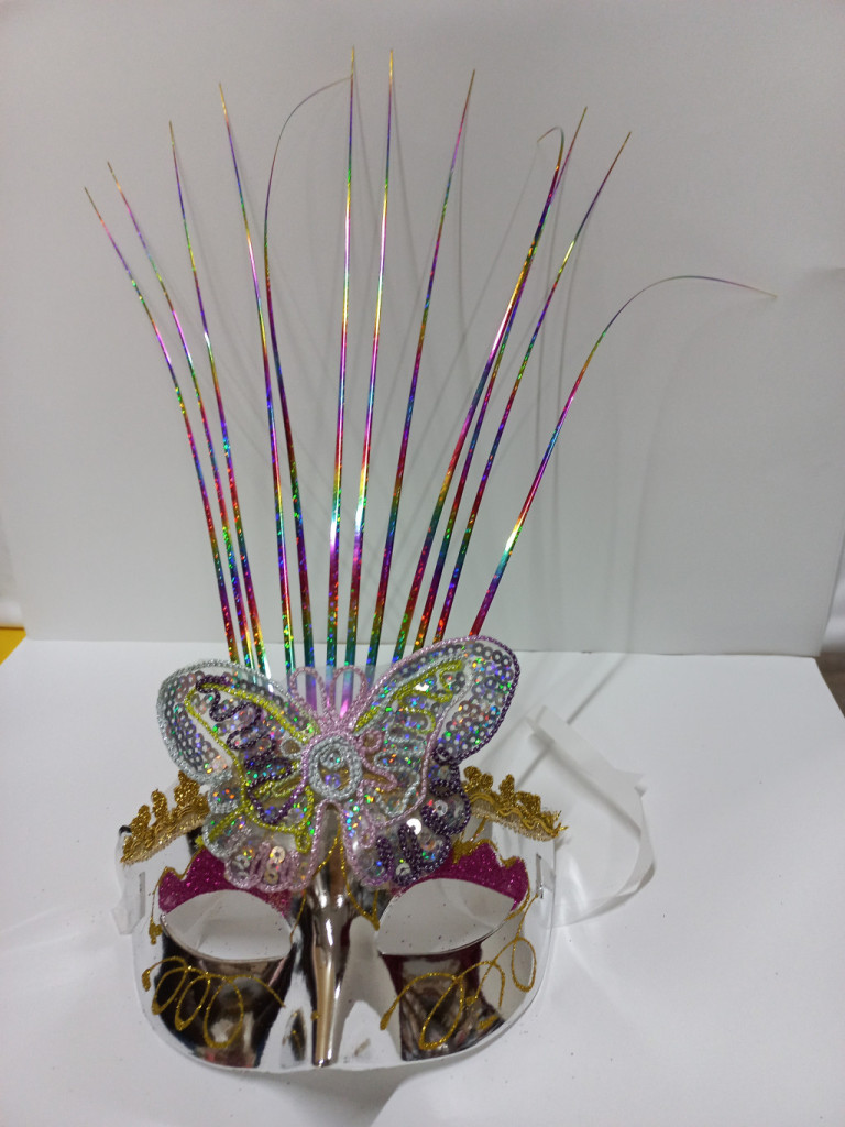Ezüst-sárga pillangós, lepkés karneváli szemmaszk, maszk, álarc - ÚJ