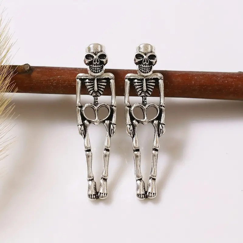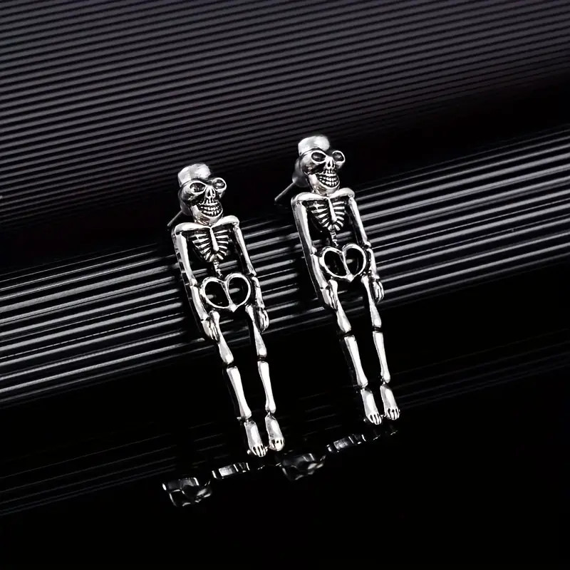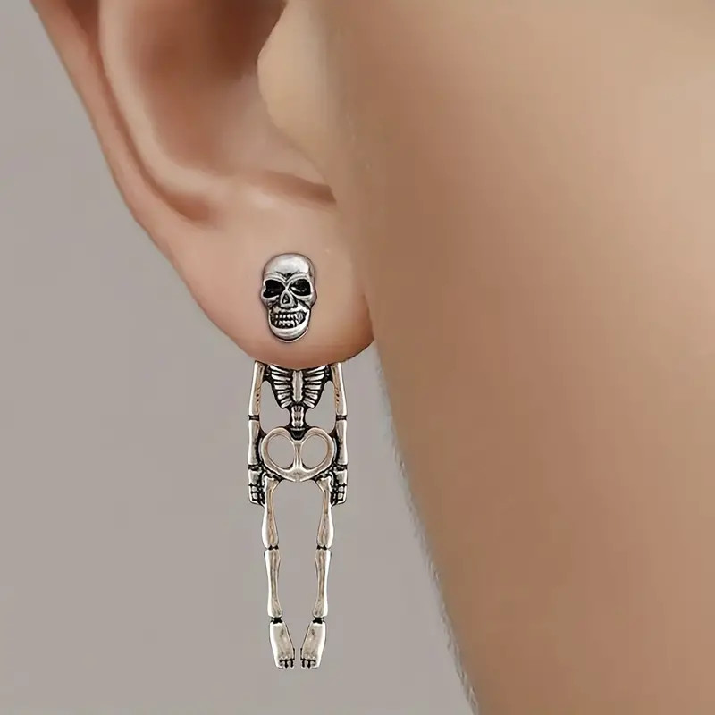 Ezüst színű csontvázas bedugós bizsu fülbevaló - ÚJ