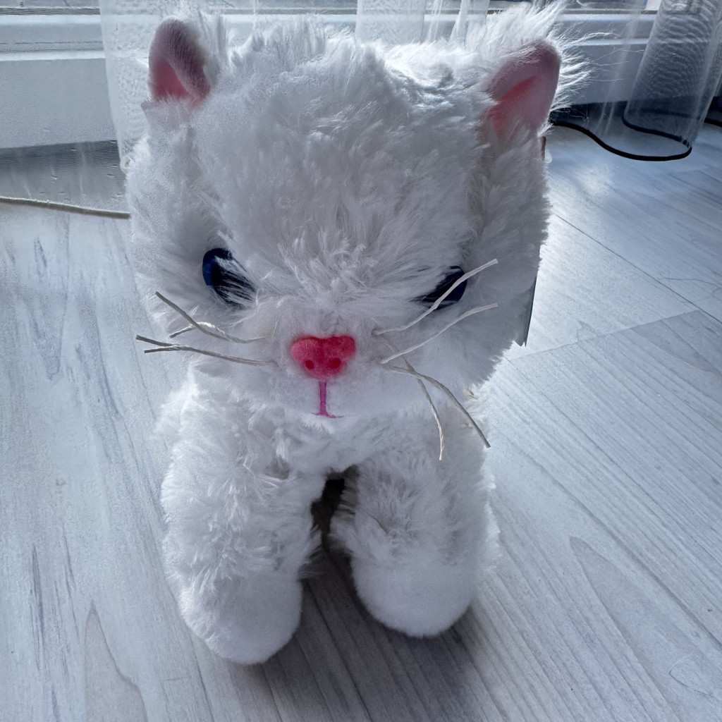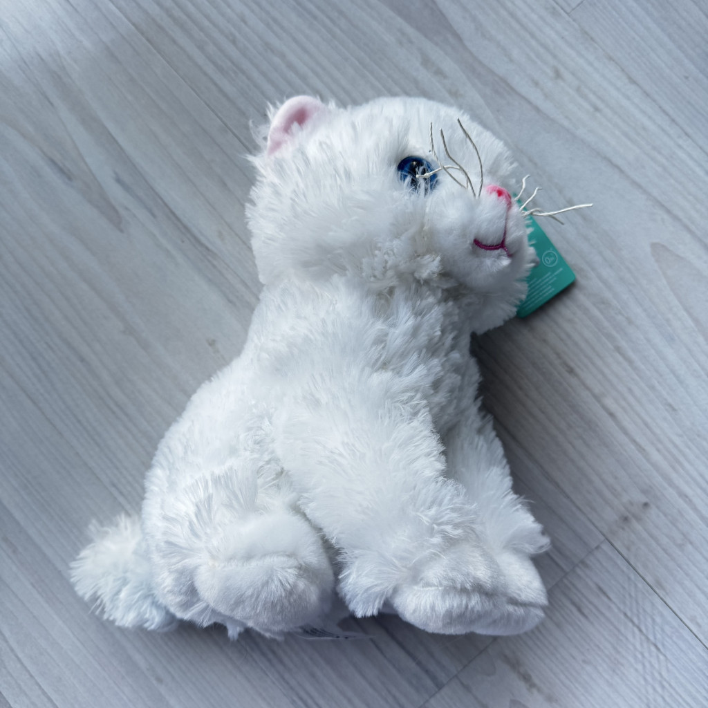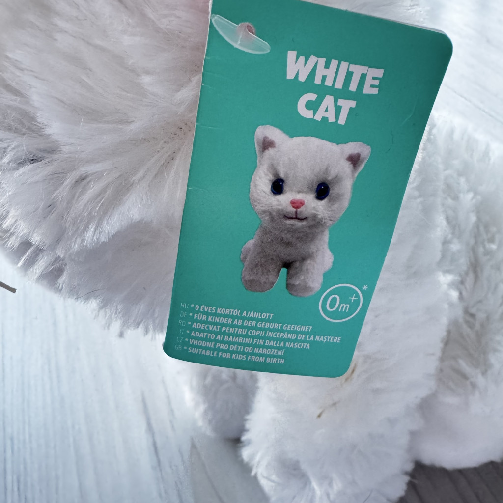 Fehér plüss cica, játék