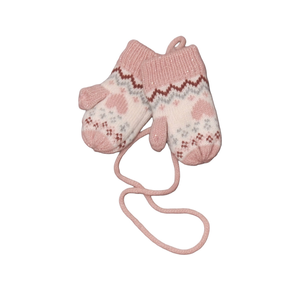 Fehér, rózsaszín egyujjas kesztyű (68-80*)