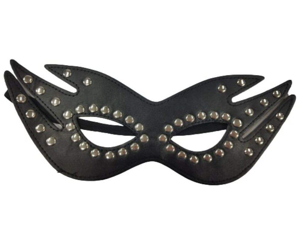Fekete bőrhatású szegecses szemmaszk, álarc, felnőtt méret - ÚJ