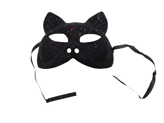 Fekete csillogó szemmaszk, álarc, fekete cica, macska - ÚJ