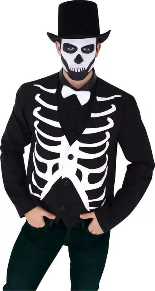 Fekete csontvázas jelmez mellény, felnőtt méretű - Halloween - ÚJ