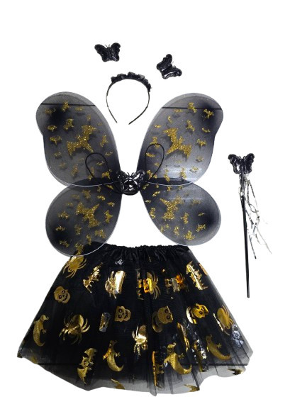 Fekete denevéres, koponyás pillangó, lepke szett, 4 részes jelmezkiegészítő - Halloween - ÚJ
