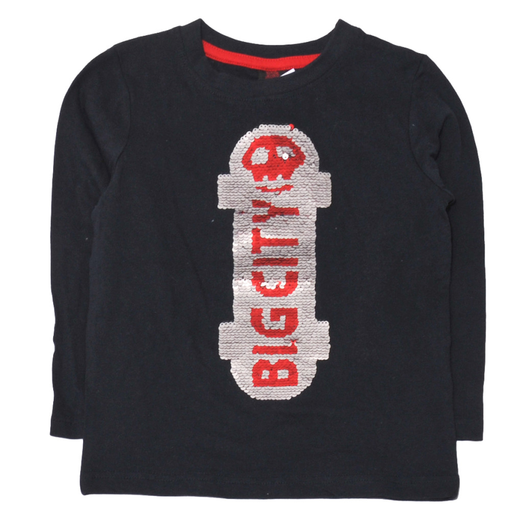 Fekete, flitteres hosszú ujjú póló (98-104)
