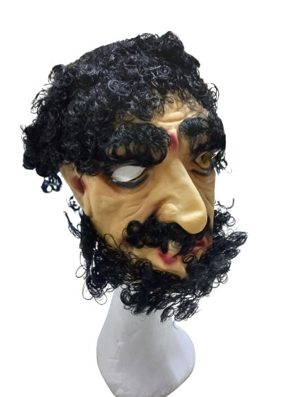 Fekete göndör hajú kalóz, férfi fej gumi maszk, álarc - ÚJ