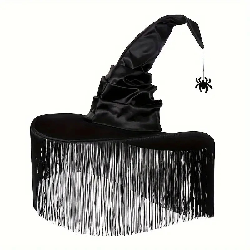 Fekete pókos rojtos felnőtt boszorkánykalap - Halloween - ÚJ