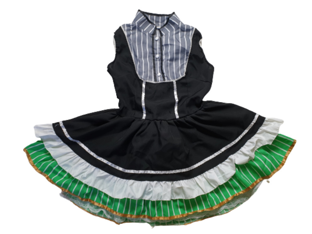 Fekete-zöld fodros aljú lány vagy női jelmezruha