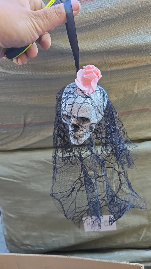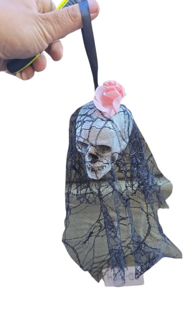 Felakasztható fátylas koponya, dekoráció - Halloween - ÚJ