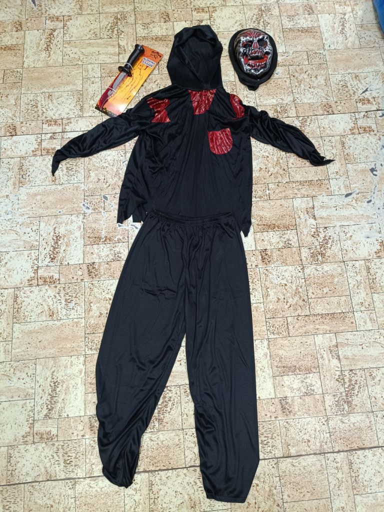 Felnőtt L méretű csontvázas jelmezszett - jelmezruha, véres kés, maszk (álarc) - Halloween - ÚJ