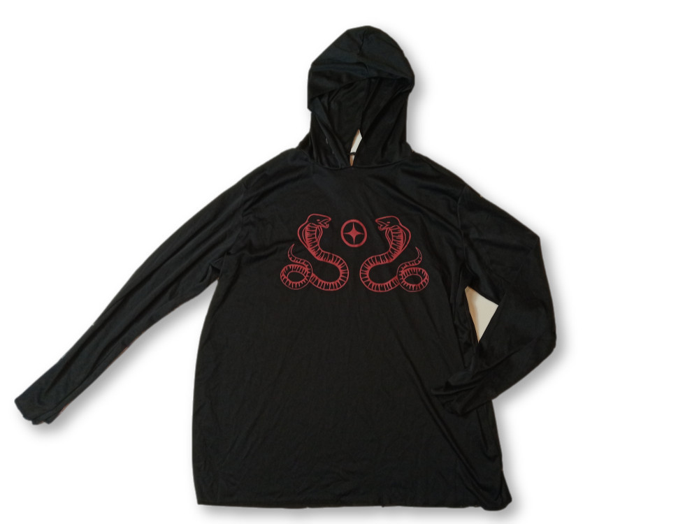 Felnőtt méretű fekete csuklyás kígyós jelmezfelső