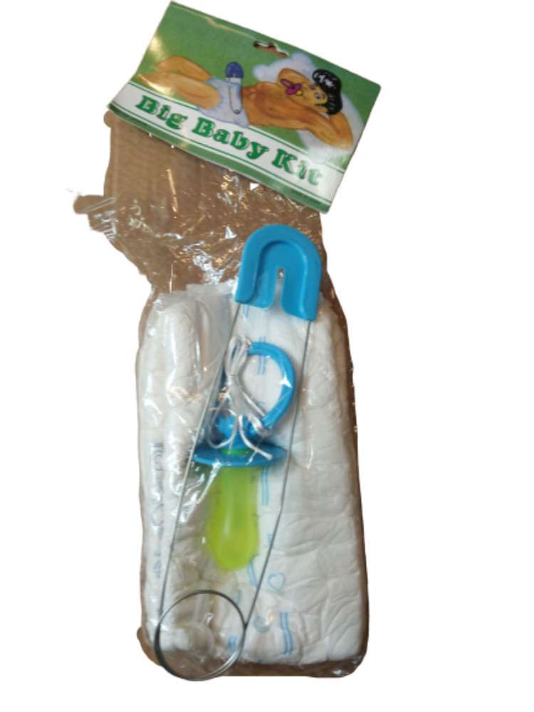 Felnőtt pelenka kék biztosítótűvel,cumival órásbébi jelmez kiegészítő - ÚJ