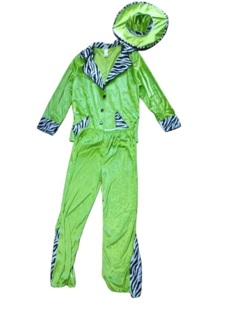 Felnőtt zöld plüss zebracsíkos szegélyű jelmez együttes, 3 részes