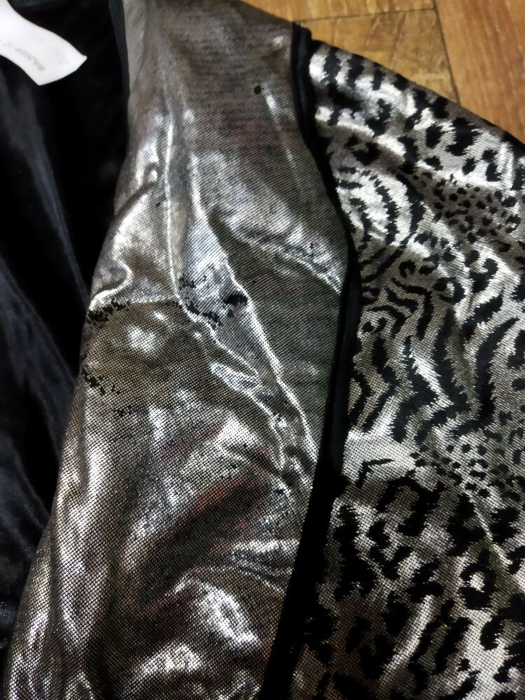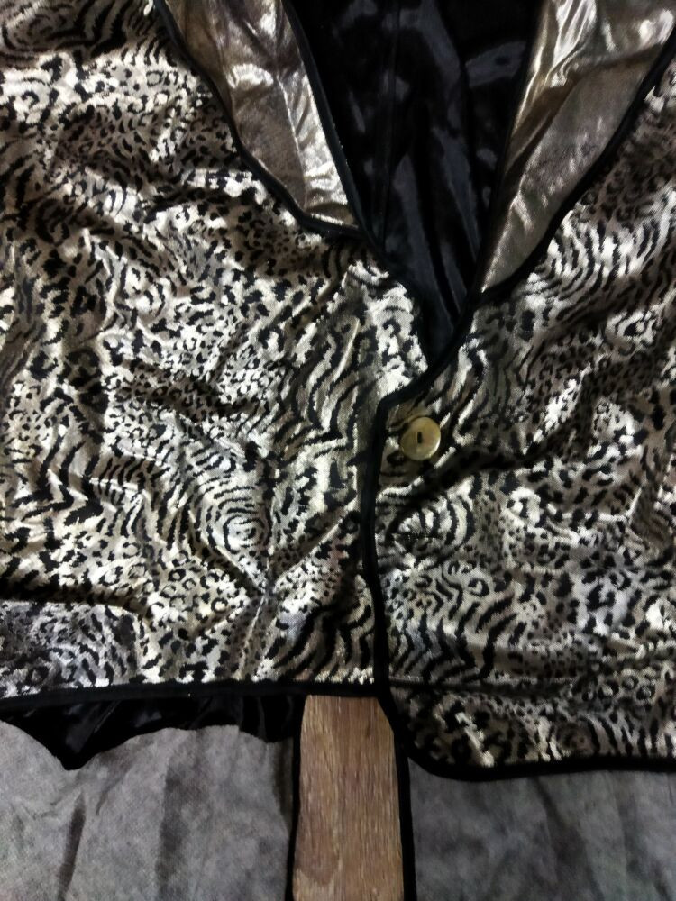 Felnőttre, nagyobb gyerekre ezüst tigrismintás frakk, jelmez (kis hibával)