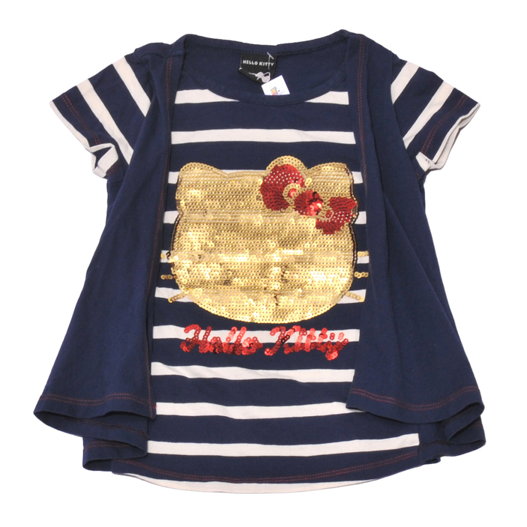 George, Hello Kitty - kék, csíkos, flitteres felső (104-110)