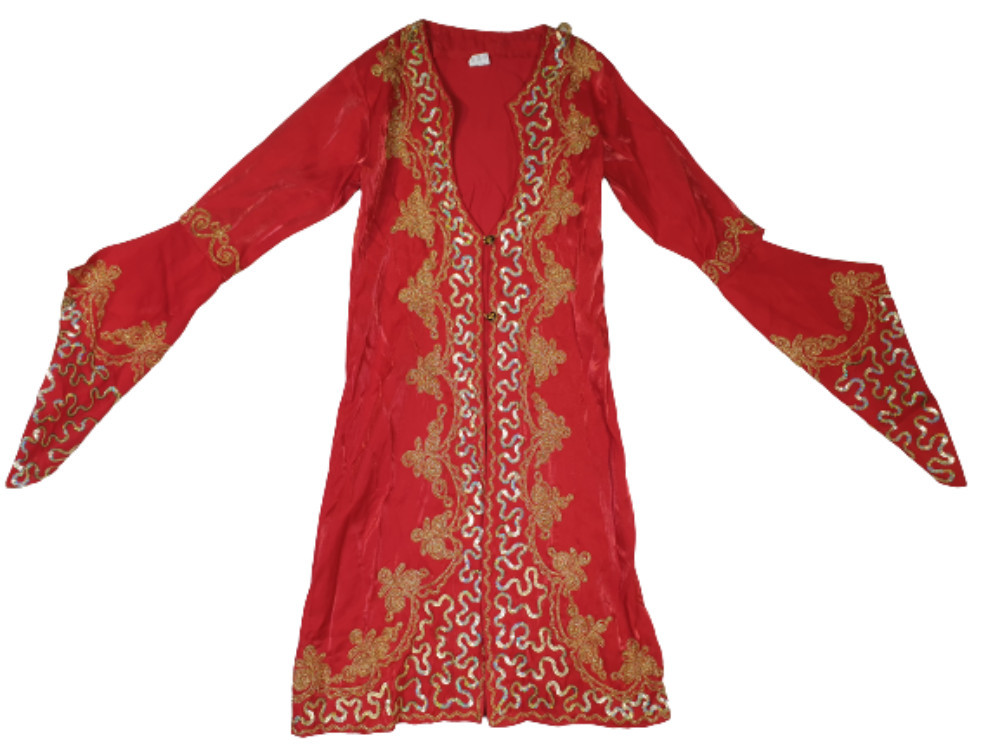Kamasz vagy női piros alapon arany hímzésű ruha jelmezruha