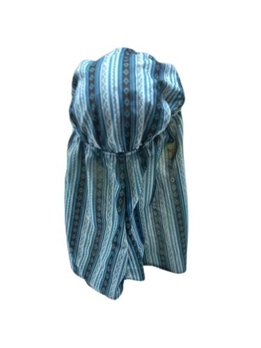 Kék-barna textil kapucni, keleti fejfedő, jelmezkiegészítő