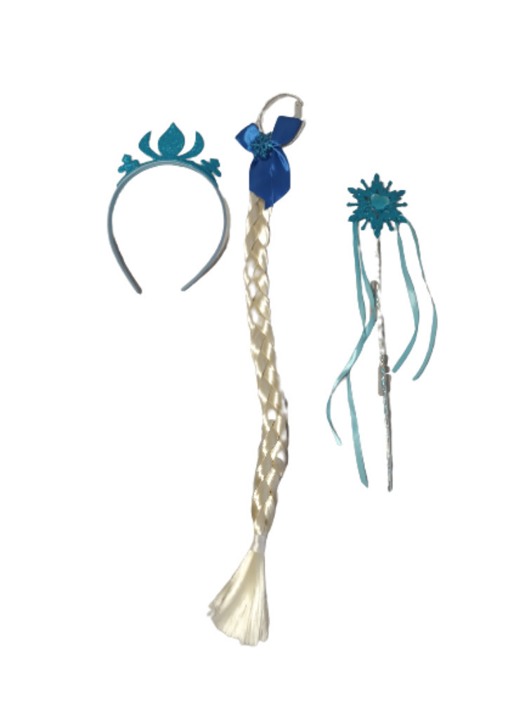 Kék jelmezkiegészítő szett, 3 db-os (fonat, pálca, korona) - Frozen, Jégvarázs - ÚJ