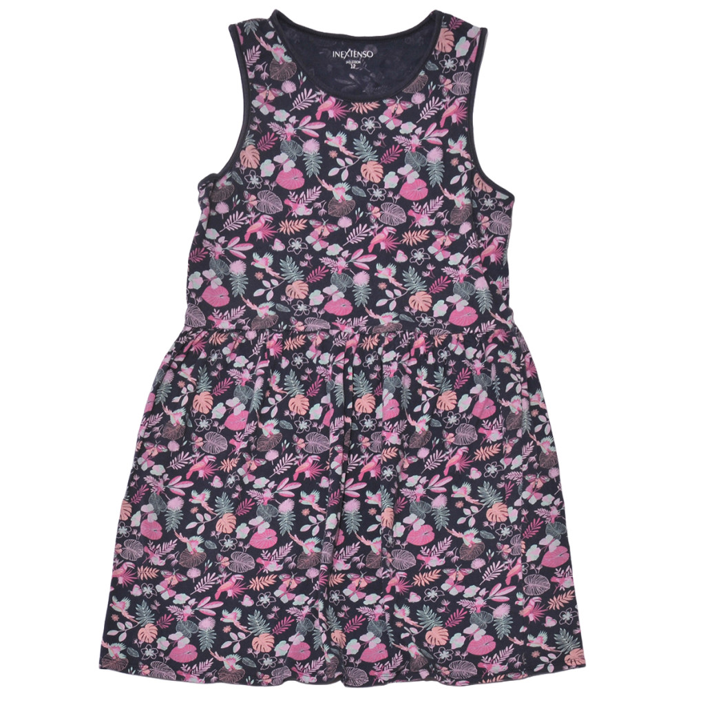 Kék, lila virágmintás ruha (152)