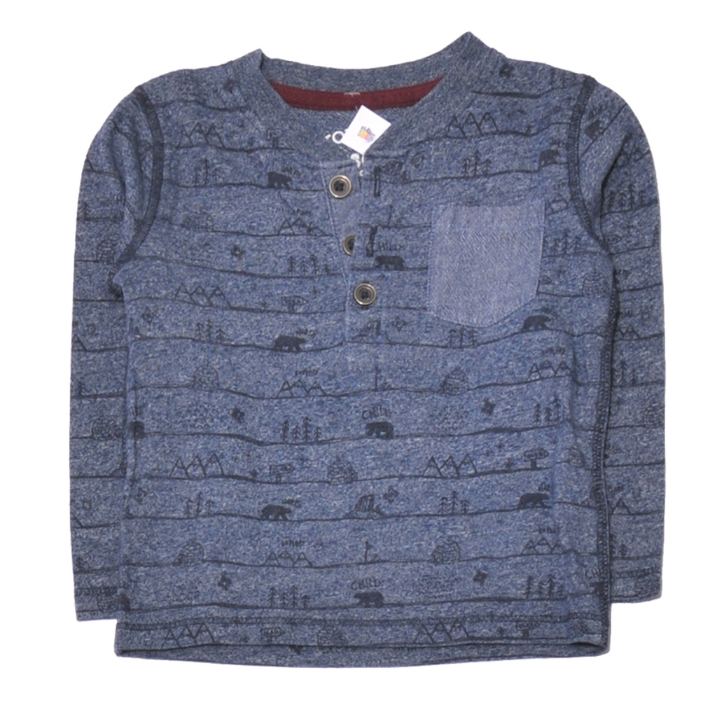 Kék, mintás hosszú ujjú póló (80-86)
