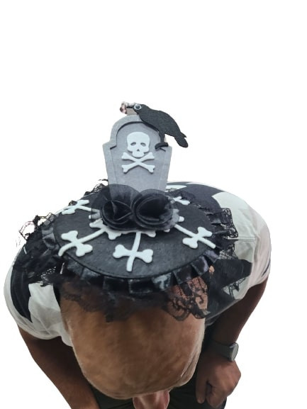 Koponyás sírköves fejdísz, kalap hajráfon, szürke - Halloween - ÚJ