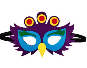 Lila páva filc maszk, álarc (gyerek méret) - ÚJ