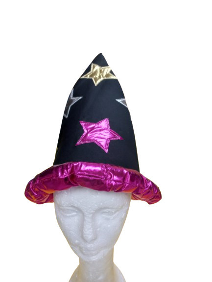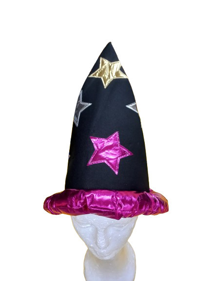 Nagyobb gyerekre fekete-pink csillagos varázslósapka, mágus sapka - ÚJ
