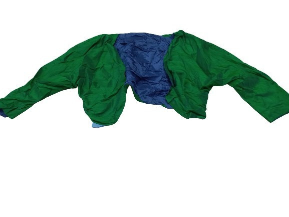 Nagyobb gyerekre színváltós kék-zöld jelmezkabát, bolero (pl. varázsló, bűvész, stb)