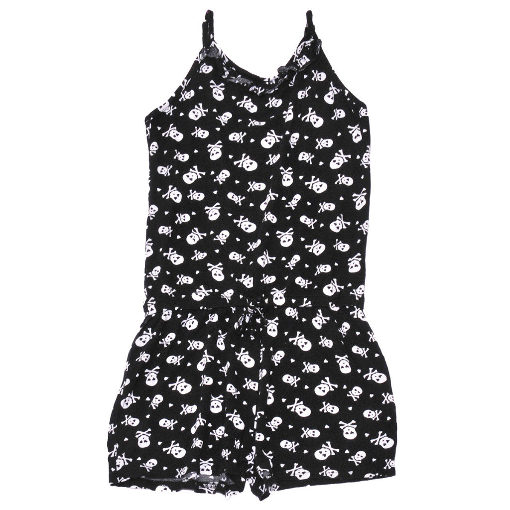 New Look - Fekete, koponyás ujjatlan, rövidszáras overál (152-158)
