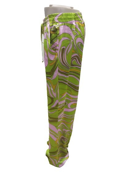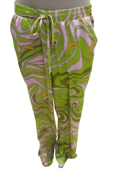 Női 46-os rózsaszín-zöld egyenes szabású, bő szárú nadrág, hippi, retro jelmezhez is jó - Amisu - ÚJ