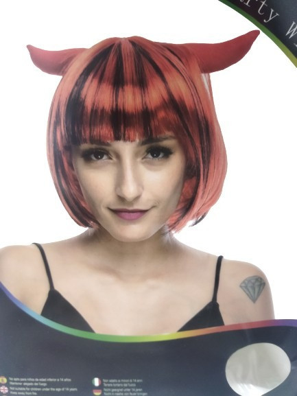 Ördögszarvas piros-fekete paróka, jelmezkiegészítő - Halloween - ÚJ