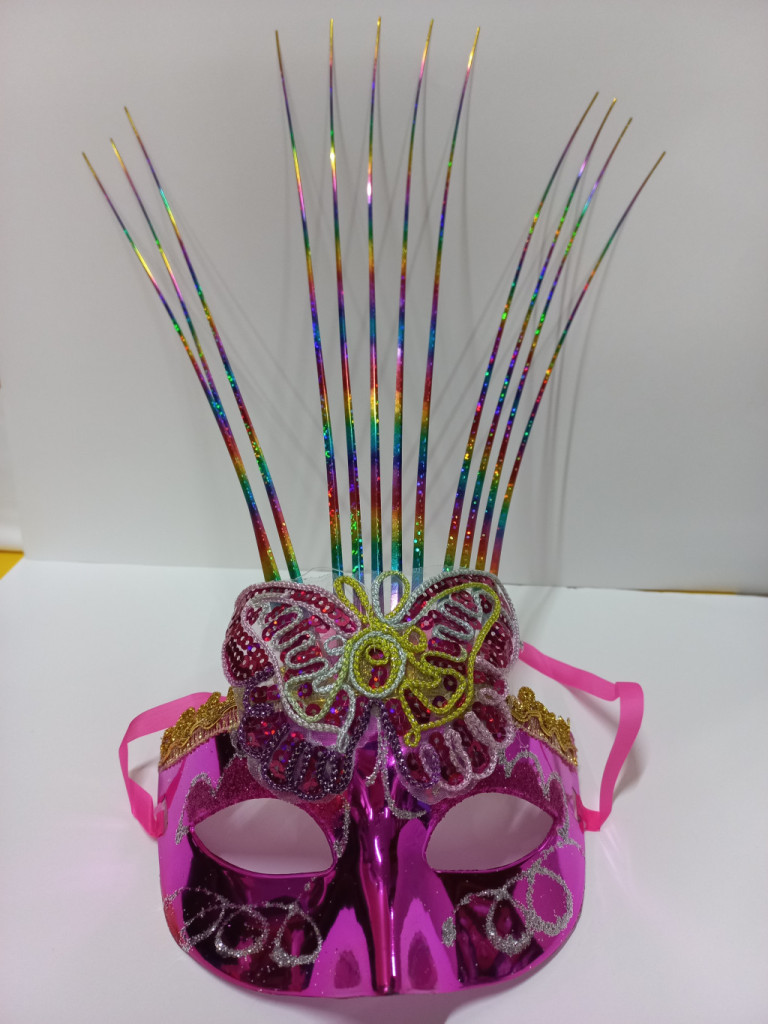 Pink-sárga pillangós, lepkés karneváli szemmaszk, maszk, álarc - ÚJ
