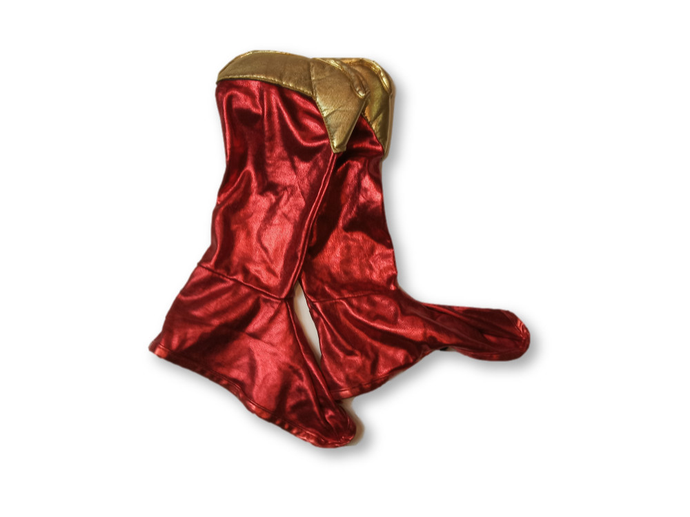 Piros-arany csillogó jelmezcsizma