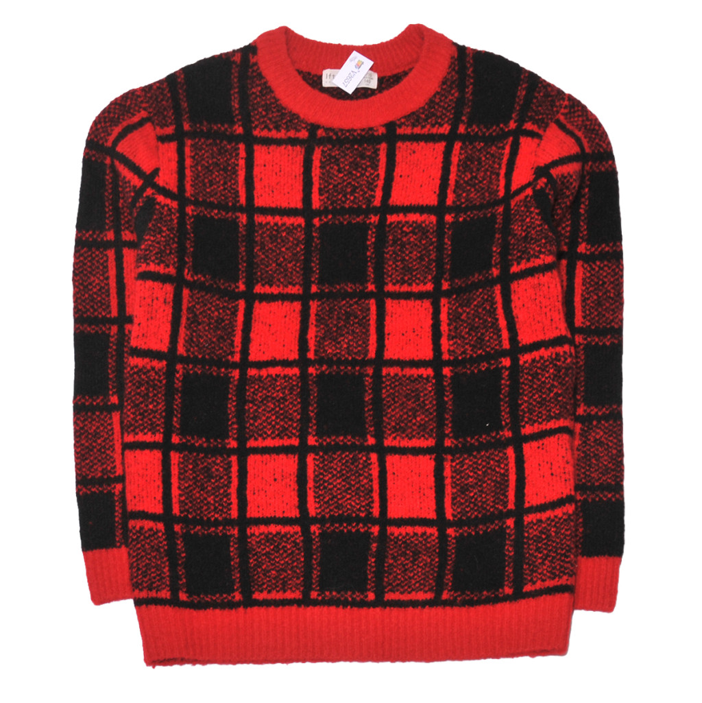 Piros, fekete kockás pulóver (134-140)