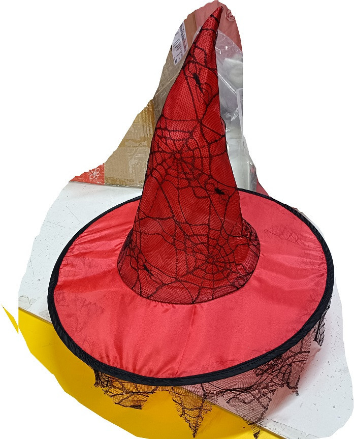 Piros-fekete pókhálós boszorkánykalap - Halloween - ÚJ