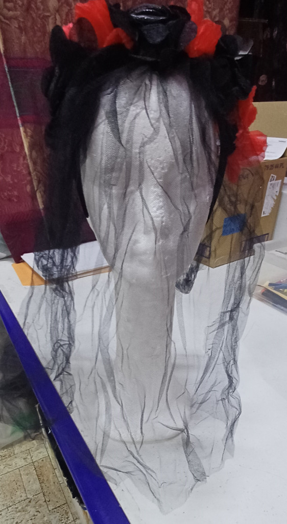 Piros-fekete tüllös fejdísz, fátyol hajráfon - Halloween - ÚJ
