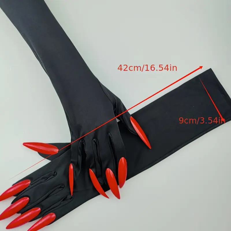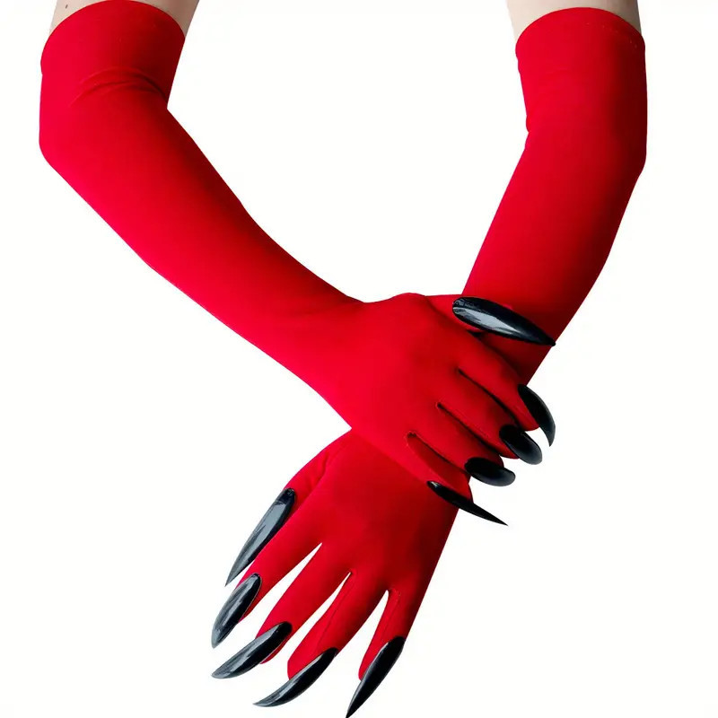 Piros hosszú boszorkány kesztyű fekete karmokkal - ÚJ